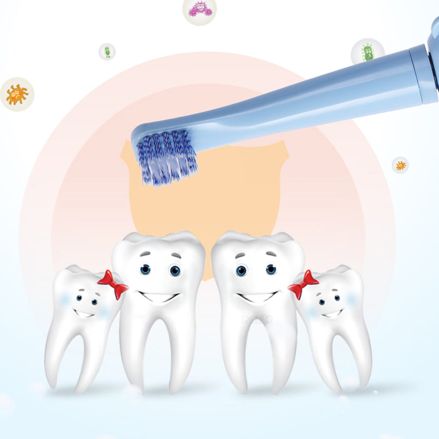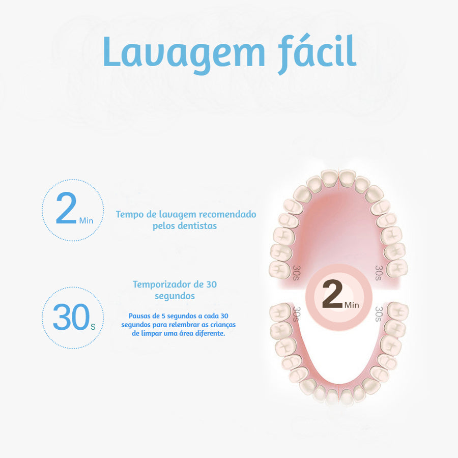 Através da vibração, permite que as crianças poupem tempo e obtenham uma limpeza profunda.