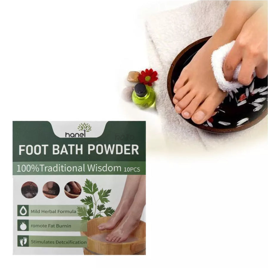 As saquetas de pó para colocar na água, são feitas à base de plantas que ajudam a nutrir e hidratar a pele dos pés, para além de outras vantagens.