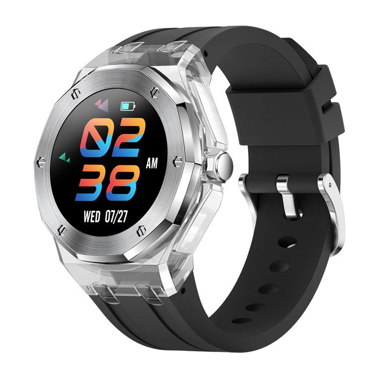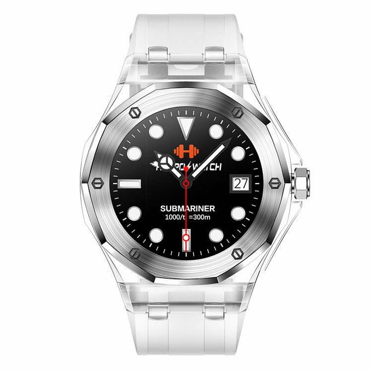Incorporado com uma bracelete em silicone transparente tornando-o mais confortável e irreverente.