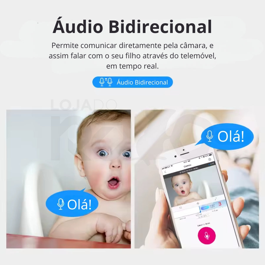 A tecnologia de áudio bidirecional, permite-lhe comunicar com as crianças diretamente do telemóvel, mesmo não estando em casa. Tem ainda a vantagem de este armazenar as gravações no cartão TF e assim poder ver mais tarde.