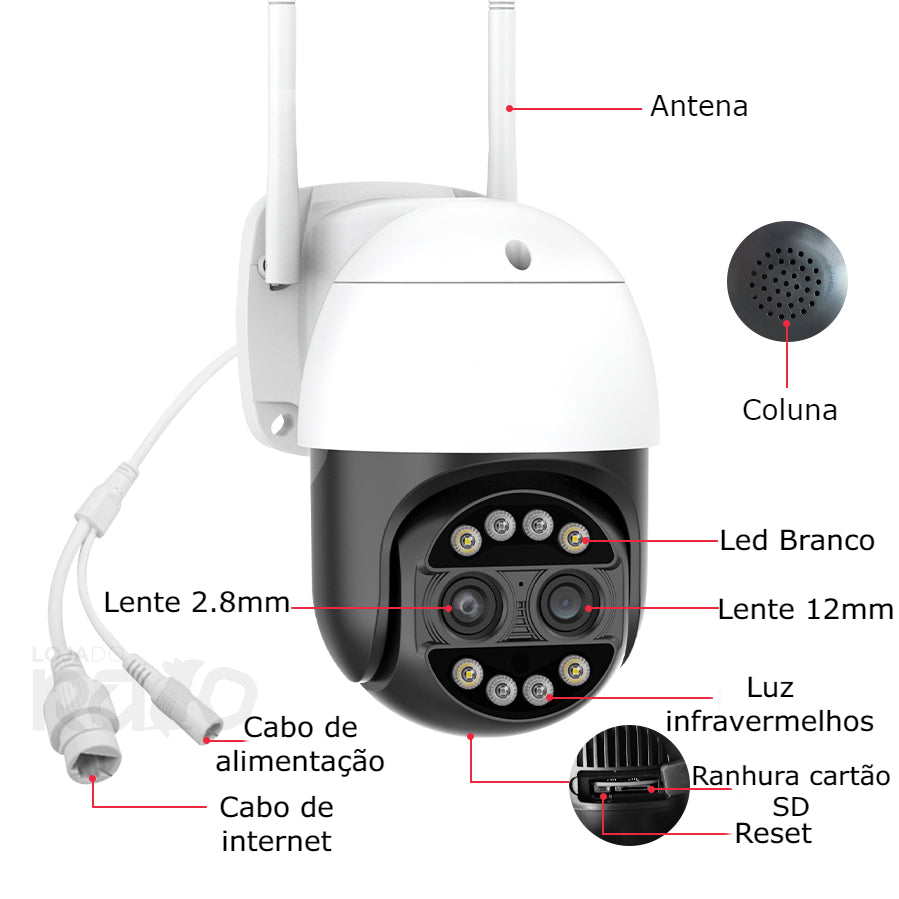 - Fonte de alimentação: DC 12V (Não é impermeável ou protegida é necessário protegê-la na hora da instalação)