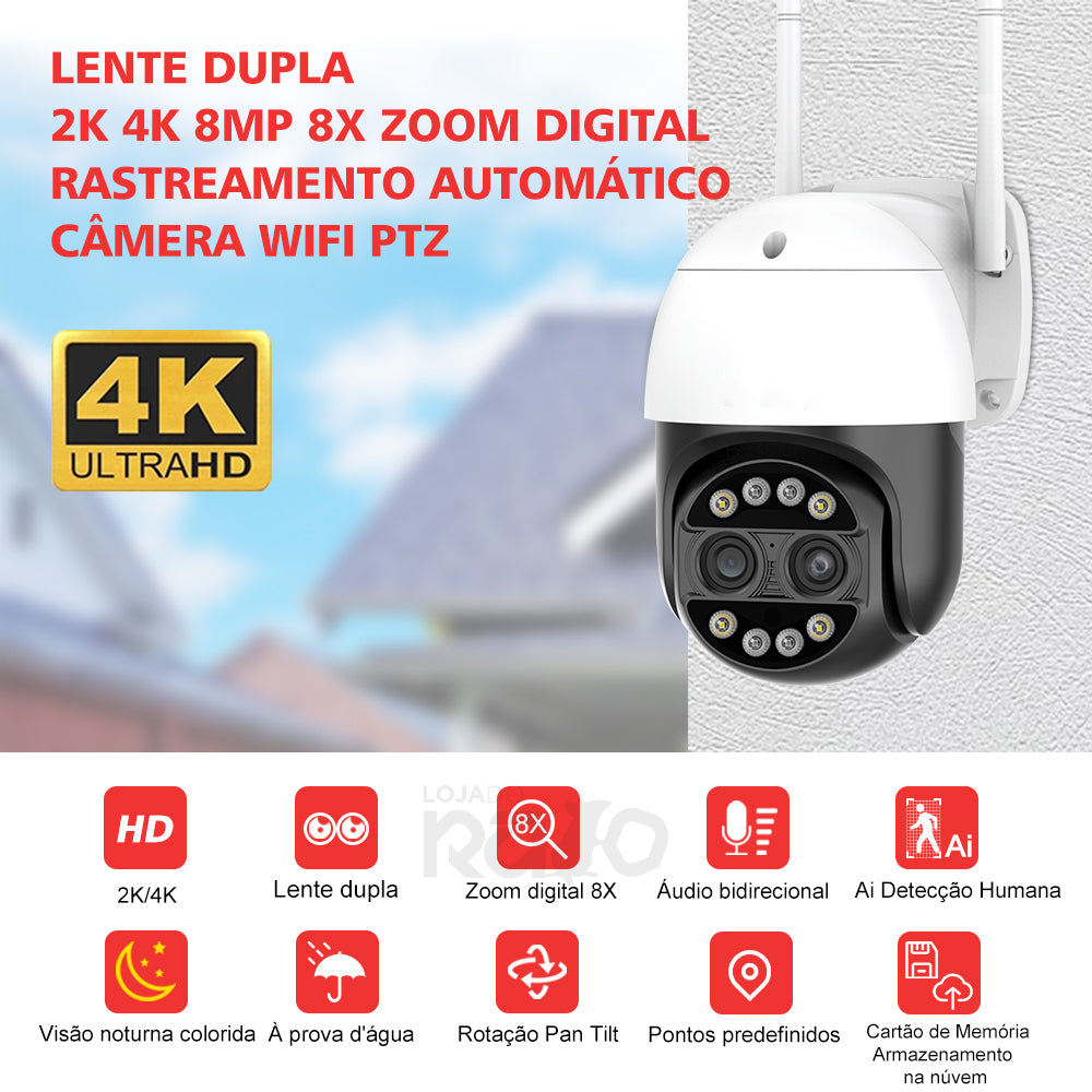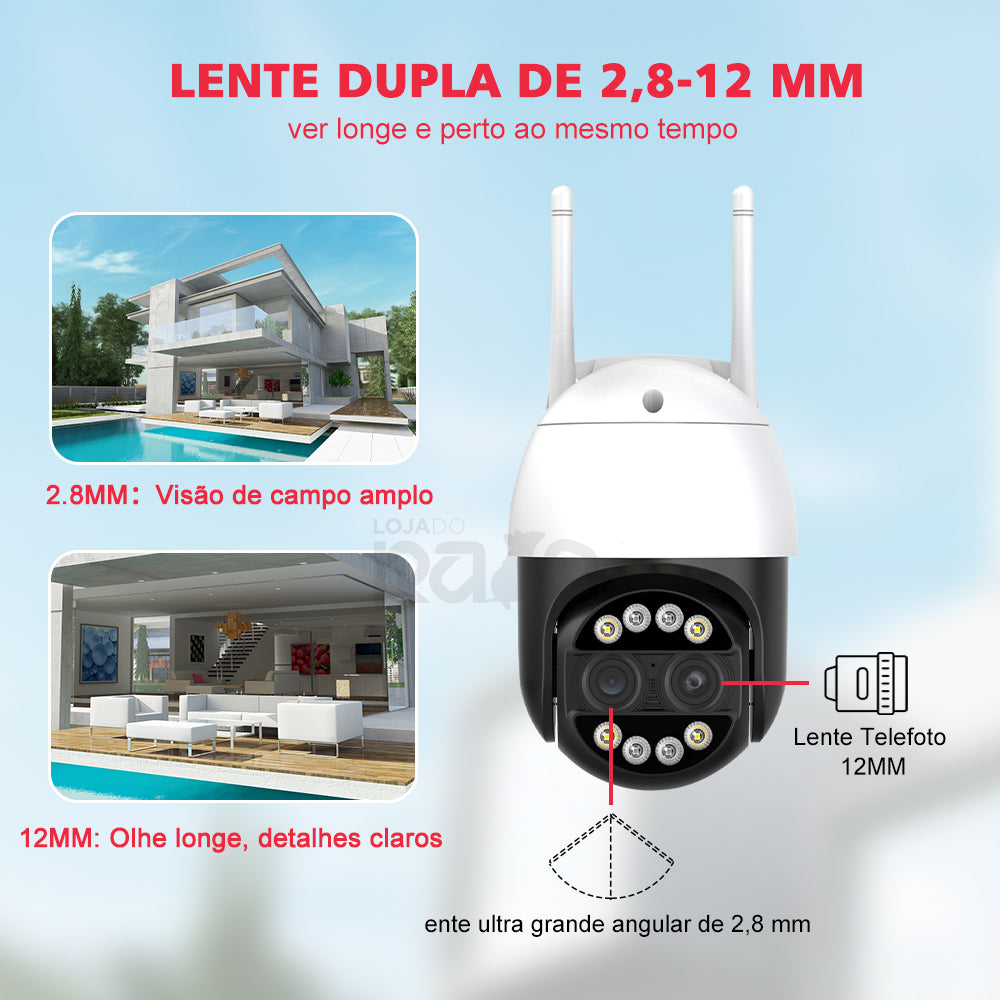 Proteja a sua casa ou escritório com a incrível câmara de segurança com lentes binoculares de 4MP. A proteção de entrada IP66 garante que a câmara de segurança resistirá a condições climatéricas adversas, mantendo-a a funcionar perfeitamente. Com capacidade para cartão de memória de até 128GB (não incluído), terá espaço suficiente para armazenar todas as gravações.