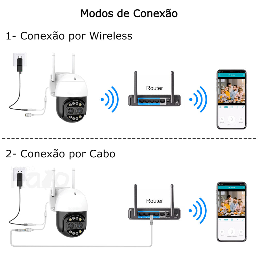 Conexão wifi para visualização remota mais conveniente, com alcance de visualização de rotação horizontal de 355° e vertical de 90°. Consegue visualizar o que a câmara está a gravar.