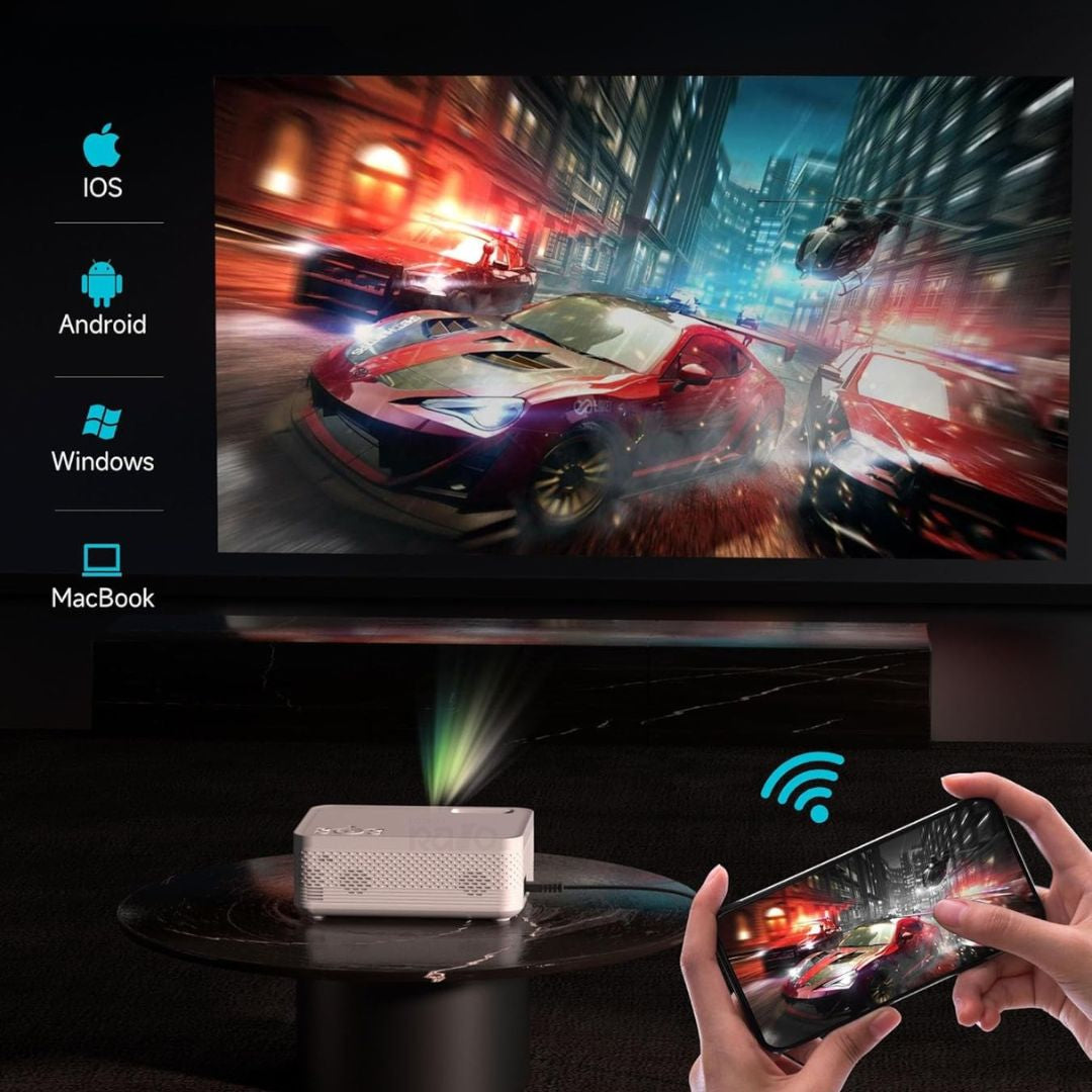 Ideal para filmes, séries, jogos e eventos desportivos, este mini projetor é perfeito para uso em casa, viagens ou momentos de lazer com família e amigos.
