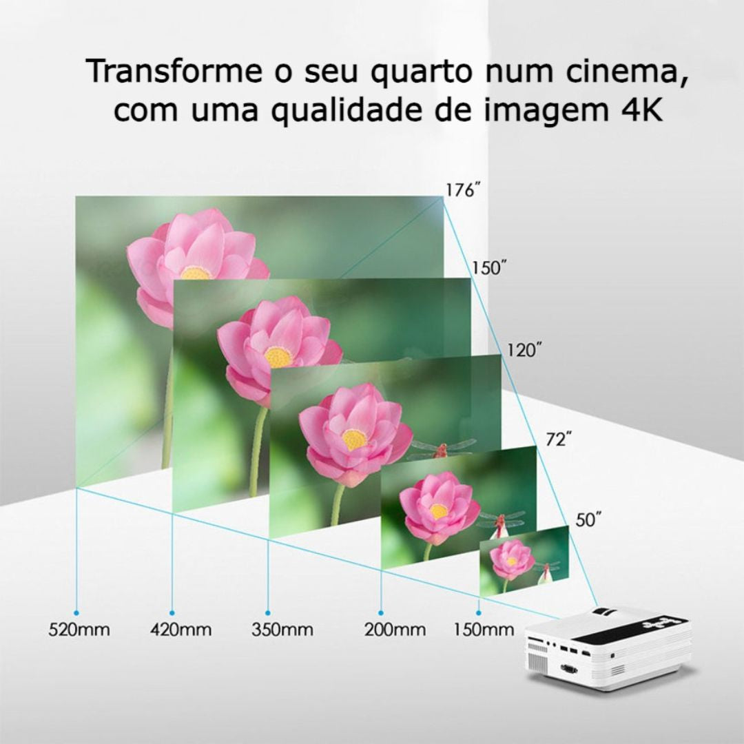 Diga adeus às telas pequenas e à qualidade de imagem sem brilho, com este projetor, a resolução Ultra HD, sentirá que está no meio da ação, seja a assistir a um filme ou ao seu jogo favorito.