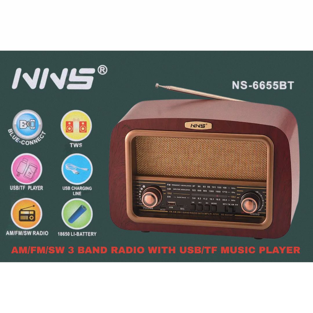 1 × Rádio Retro BT Recarregável – NS-6655BT