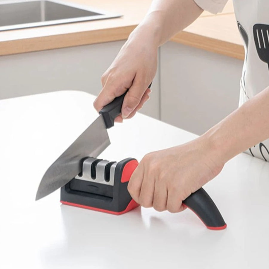 O afiador de facas pode trazer mais praticidade no seu dia a dia, é um amolador que consiste em 3 níveis de afiação. É perfeito para recuperar o fio das suas facas.