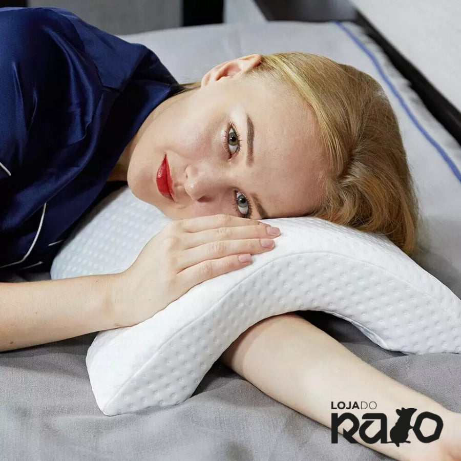 Deixe para lá as posições desconfortáveis e dores no corpo, a almofada relaxante curva ajuda a manter a curvatura natural da coluna cervical e do pescoço.