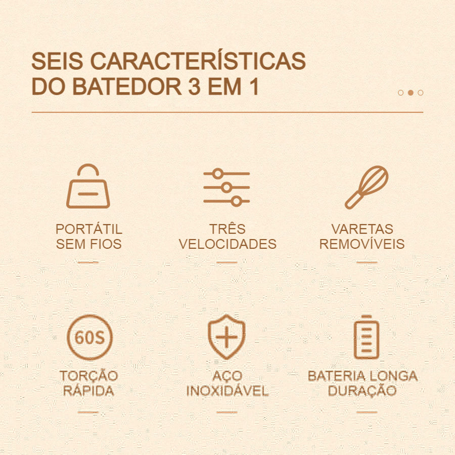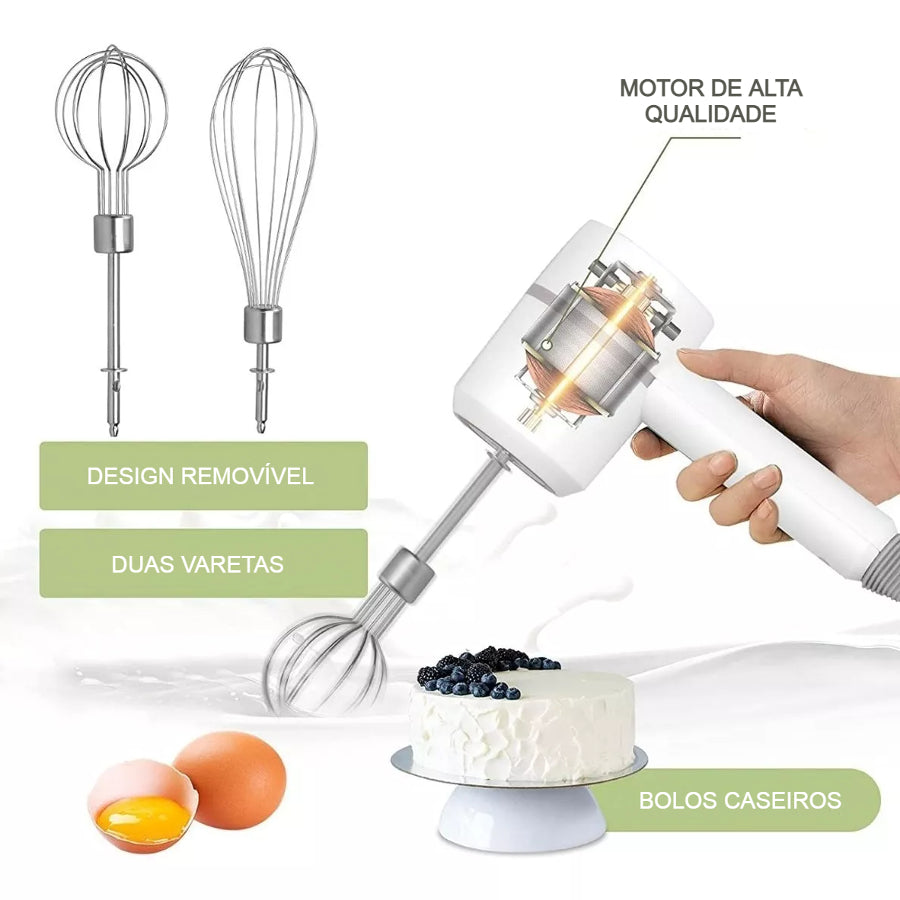Batedor Elétrico Recarregável 3 em 1