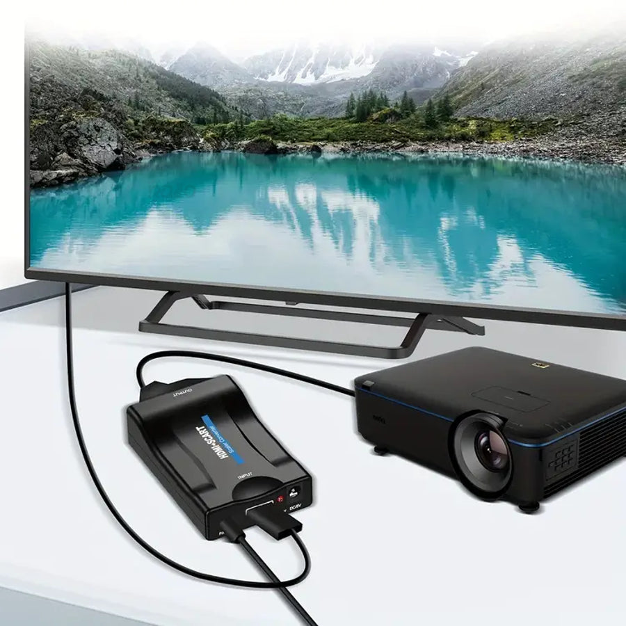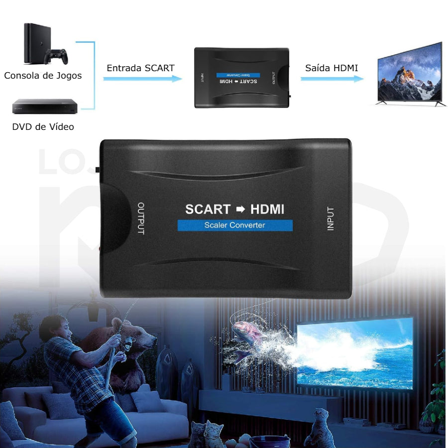 O conversor de sinal SCART, converte o sinal de vídeo SCART para o sinal digital HDMI, para poder transmitir em qualquer televisão.