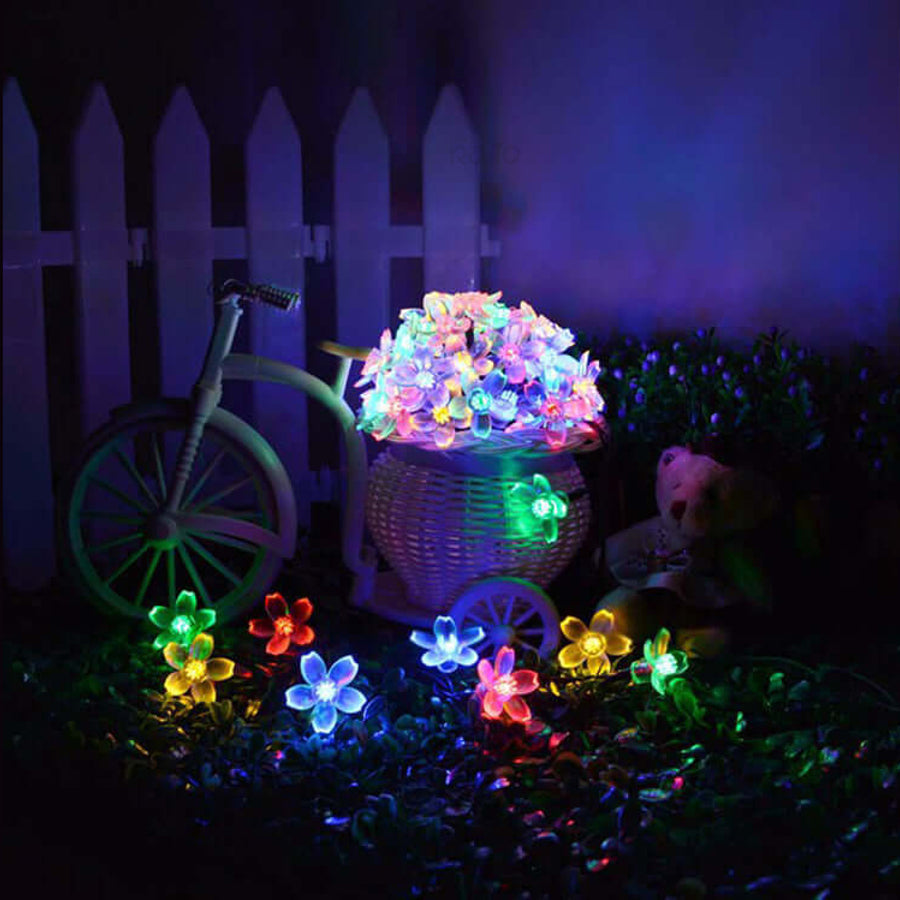 A grinalda solar LED flores coloridas adiciona um toque vibrante e alegre a qualquer espaço exterior.