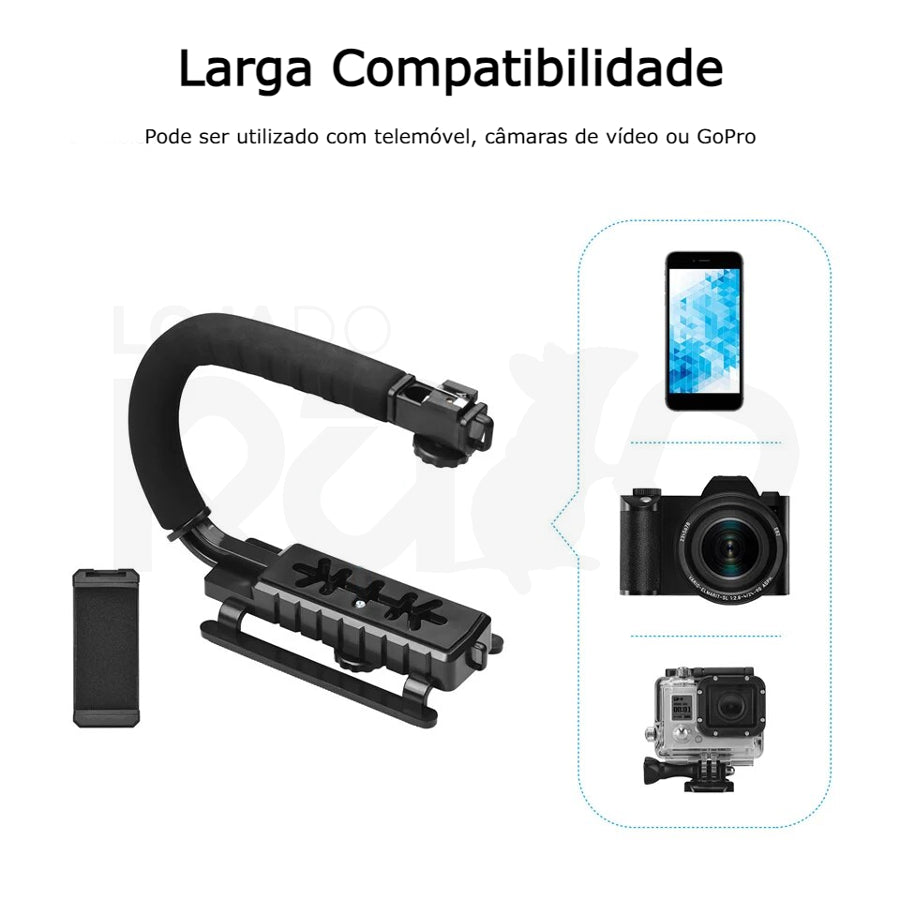 Com o tripé pode utilizar câmaras de vídeo, câmaras Go pro e ainda o telemóvel com o suporte incluído no kit. Com este kit consegue tornar os seus vídeos mais profissionais e elevar a qualidade dos mesmos.