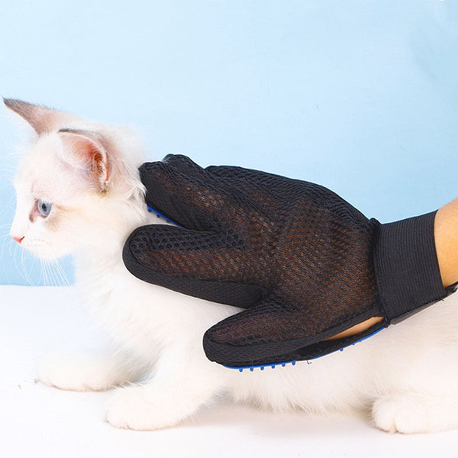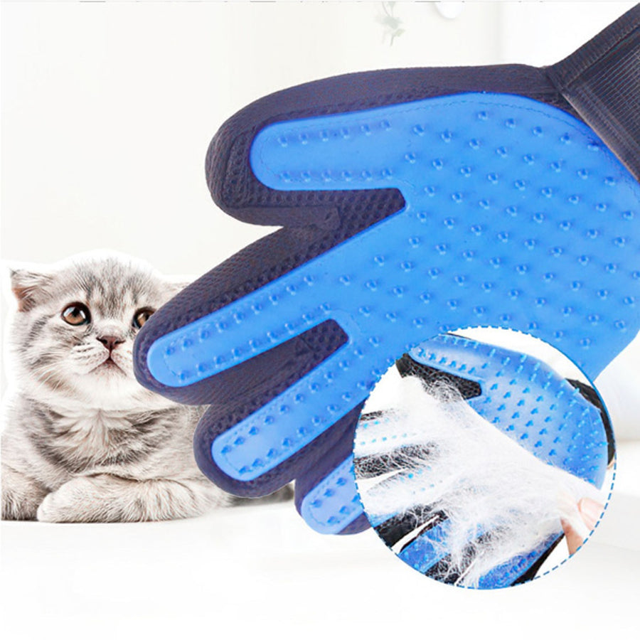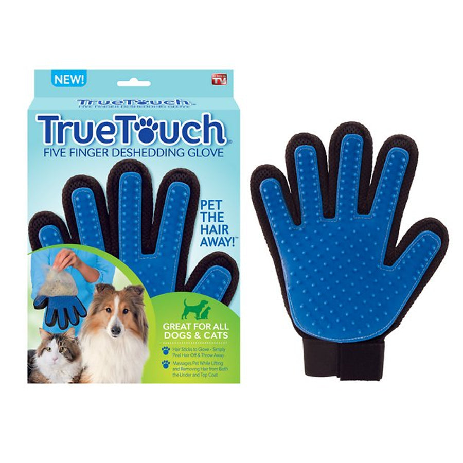 Luva de escovagem True Touch para uma limpeza suave e eficiente do seu animal de estimação.