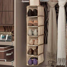 O organizador de sapatos, possui 5 compartimentos para que possa organizar os seus sapatos no armário.