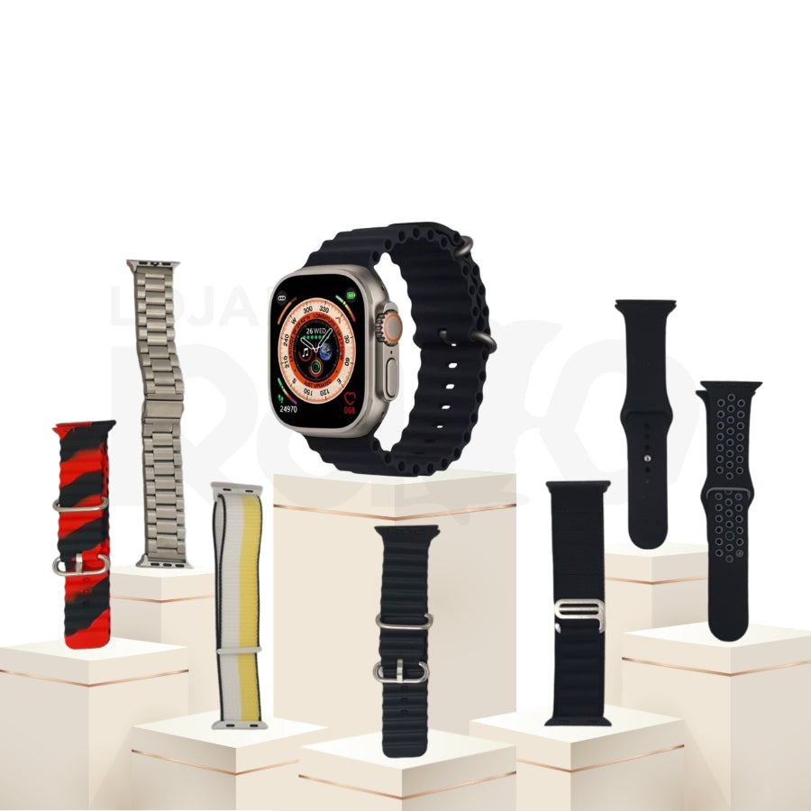 O smartwatch ultra 7 em 1, é um dispositivo versátil de última geração que combina estilo e funcionalidade, com uma série de recursos reunidos no design elegante e moderno.