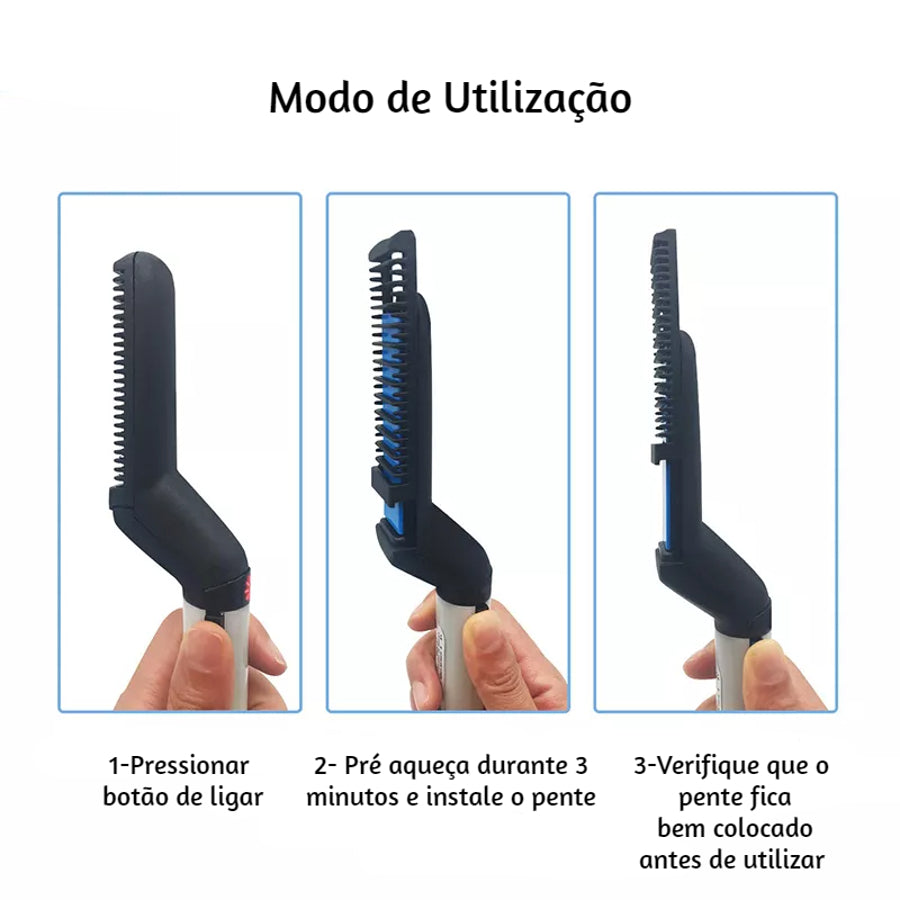 Pente Térmico com aquecimento rápido, para pentear, alisar e dar volume pode ser usado para barba.