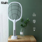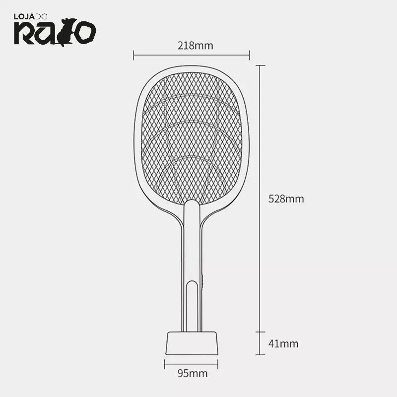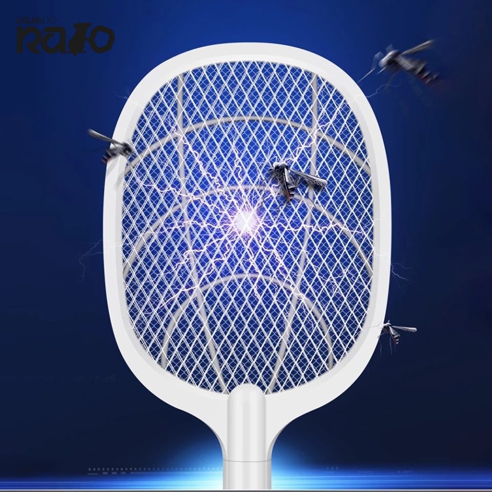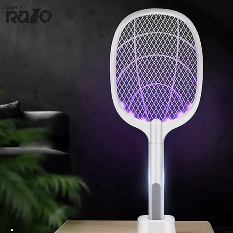 Uma raquete elétrica recarregável, que mata facilmente moscas, mosquitos e outros insetos. Pode usar tanto pousada numa superfície como manualmente, usando a raquete para bater diretamente contra os mosquitos.