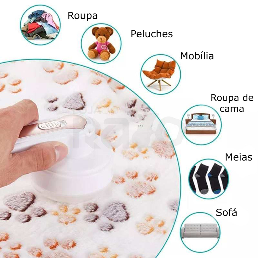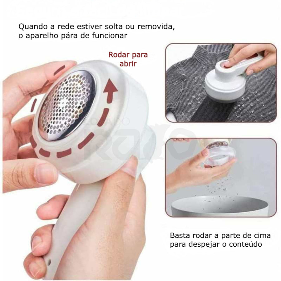 - Remove todos os borbotos ou fiapos que pretenda remover das peças de vestuário, peluches, entre outros.