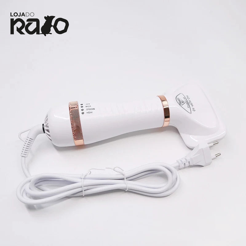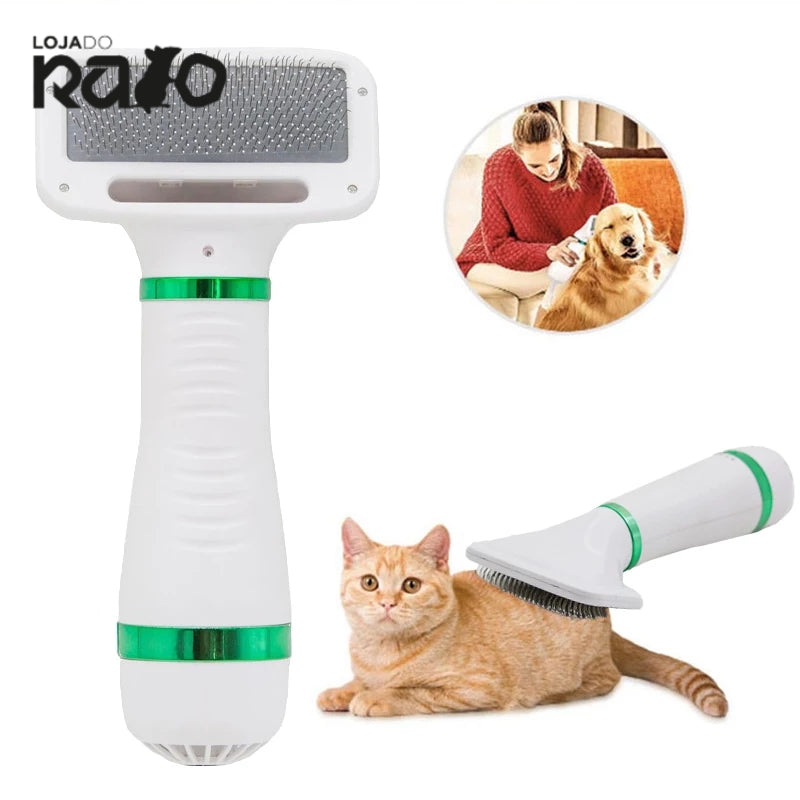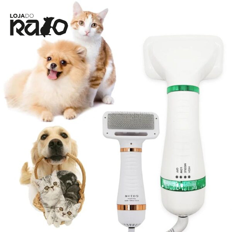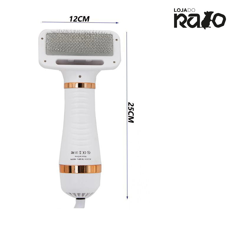 Secador 2 em 1 para pelo de animais. Têm a função de secador de pelo e pente de animal de estimação. Com ele, pode secar o pelo do seu animal de estimação e pentear facilmente ao mesmo tempo.