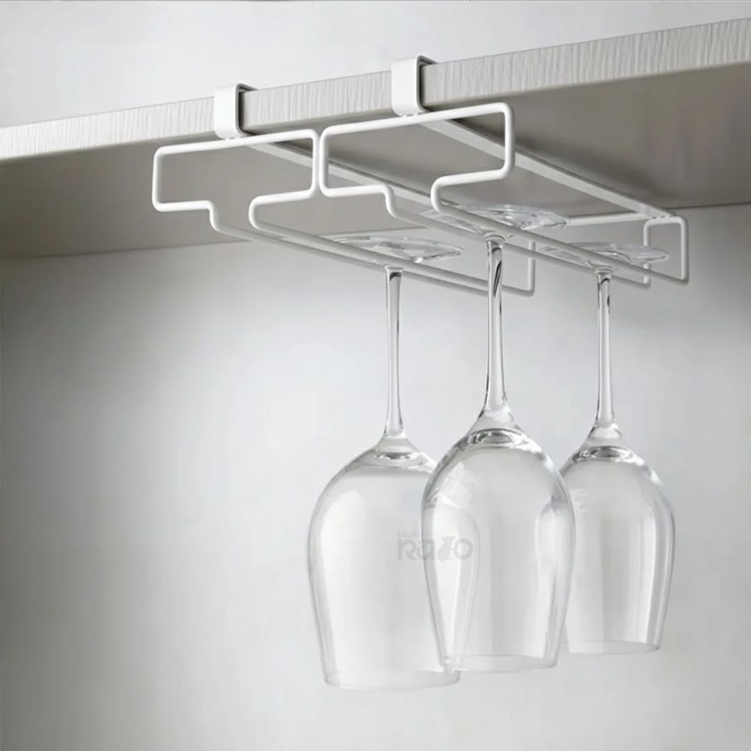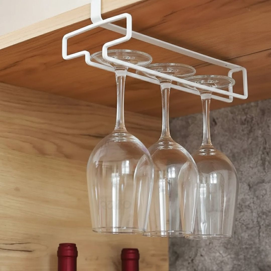 Coloque os copos de vinho de forma mais organizada com o suporte para colocar nas prateleiras dos armários.