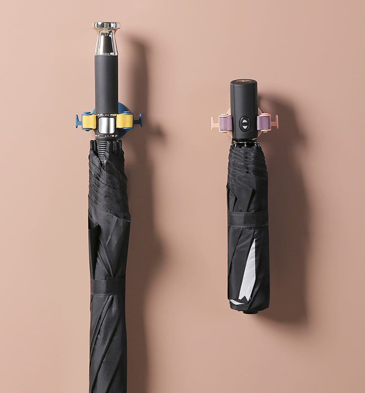 Um suporte organizador para colar na parede e organizar os seus utensílios de limpeza num só sítio. Adapta-se a cabos de diferentes diâmetros e inclui cabides para pequenos objetos.